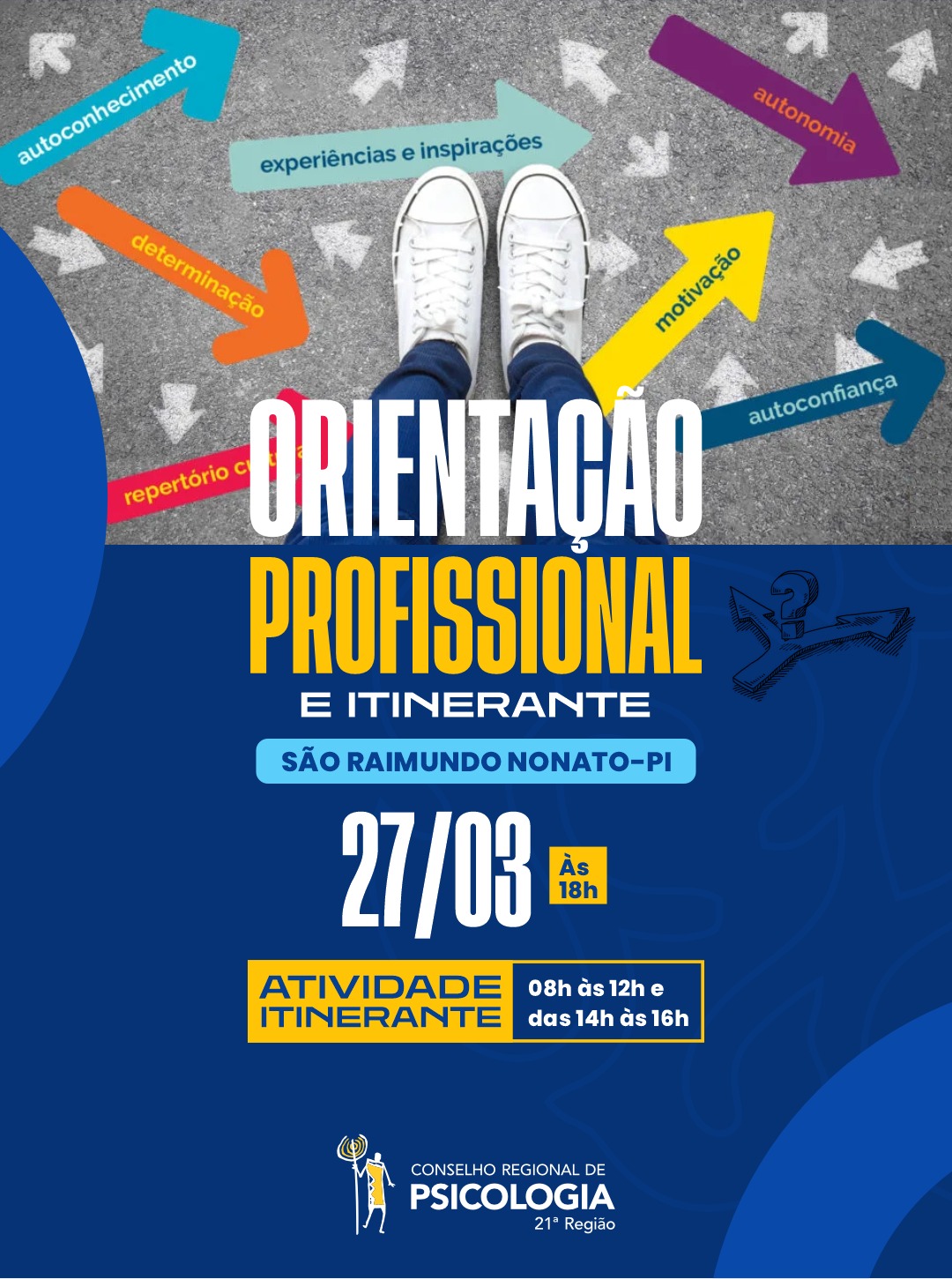 Na próxima sexta-feira (27/03) acontece em São Raimundo Nonato-PI a ação itinerante do Conselho Regional de Psicologia do Piauí (CRP21), com uma programação especial voltada para o fortalecimento da prática e da formação profissional. Confira: