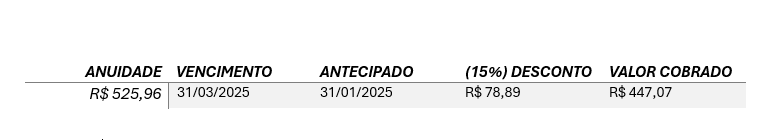 FORMAS DE PAGAMENTOS DA ANUIDADE DE PESSOA FISICA